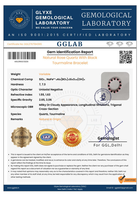 Natural Rose Quartz with Black Tourmaline Bracelet