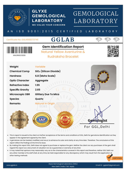 5 Mukhi Rudraksha Yellow Aventurine Bracelet